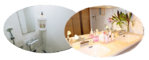 産科個室の方が利用するシャワールームは全面改装を終えた2室のご用意があり、アロマ系ソープ類を常備しております。また、2室に異なるメーカーのマイクロナノバブルシャワーヘッドを備えておりますので日替わりでお楽しみいただけます。